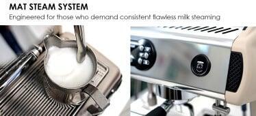 MAT Steam: Automatic system for milk emulsion with adjustable temperature and setting "latte/cappuccino".